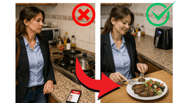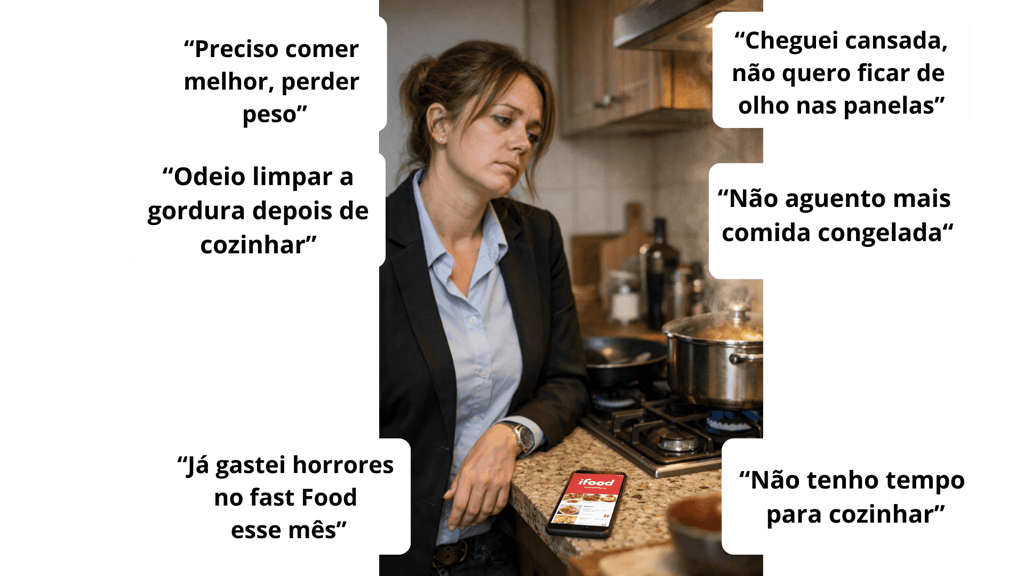 Fala a verdade, dia corrido e ainda tem que escolher entre cozinhar ou descansar. Resultado? Come qualquer coisa rápida e se sente culpado depois.