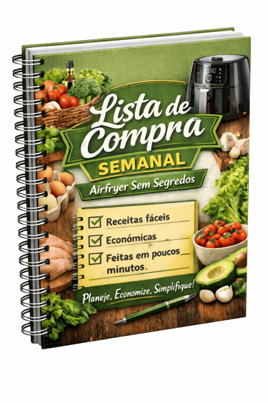 Tenha em mãos uma lista de compras para te guiar e agilizar sua idá ao mercado e fazer suas receitas na Airfryer com praticidade.